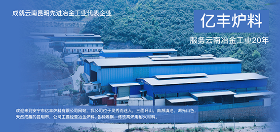 安宁市亿丰炉料有限公司于1998年成立,注册资本1000万元,是集技术研发、生产、销售和全程施工服务为一体的耐火材料企业,占地面积22650m2,现有职工300余人,管理人员65人(其中,本科11人,大专16人,技术人员19名,长期聘请国家级教授2人,高级工程师3人,专科技术人员6人,生产一线质检技术人员10人);年产耐火材料2万吨,是云南省规模最大的不定型耐火材料生产企业。主要经营项目:不定型炉料、定型炉料的生产销售;耐火原料、金属材料、建筑材料、矿产品、机械设备的销售。公司位于安宁市安丰营,靠近320国道,技术合作及现场施工服务交通运输极为便利。