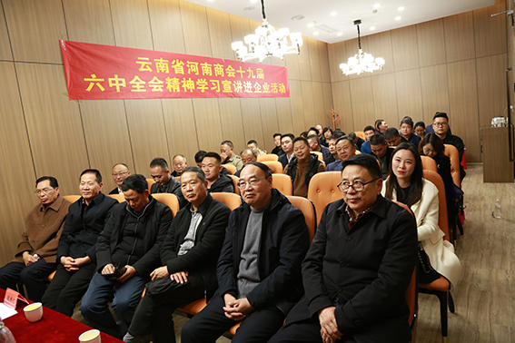 为深入开展党的十九届六中全会精神宣讲学习活动,持续掀起学习十九届六中全会精神高潮,2021年12月3日下午,云南省河南商会在常务理事单位——海乐世界富多来海鲜餐厅会议室举行了党的十九届六中全会精神宣讲会。在滇豫籍老领导高秀仁、董海钧、曹军、蒋健、李英玉、李克华、李文选,云南省河南商会党支部书记、会长刘兴督,宣传委员、执行会长邓同华,常务副会长兼秘书长梁国平,常务副会长王登坤、宋铁虎,副会长赵进伟、田丰涛、许国庆、刘永、张斌、吴勤山、段家同、赵小磊,副秘书长李文明、副秘书长兼办公室主任张凤森,党支部党员、发展对象、积极分子及商会理事会员代表共88人参加了活动。常务副会长兼秘书长梁国平主持了宣讲会。