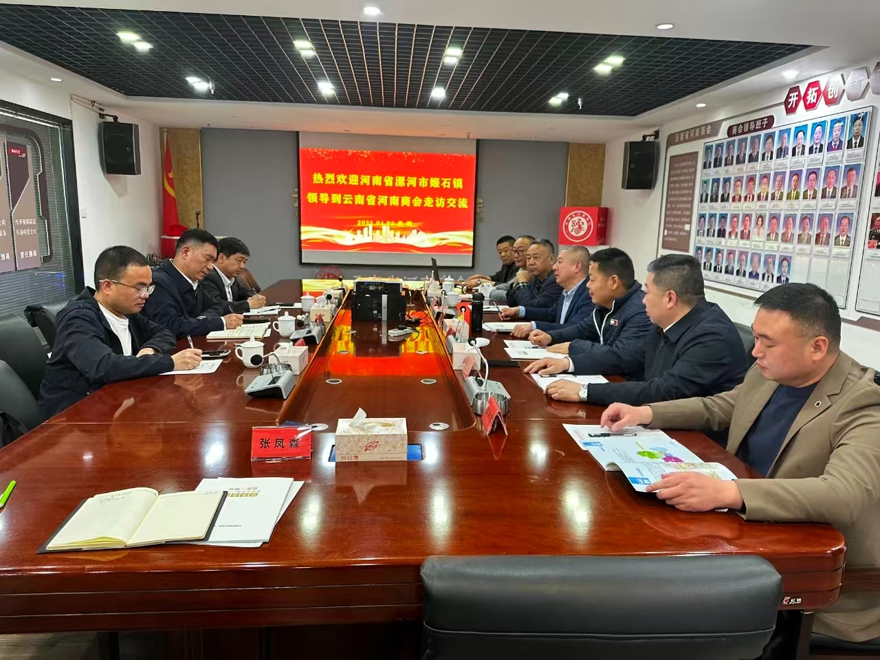漯河市城乡一体化示范区姬石镇党委书记宋广辉一行参观了商会简介、荣誉展示、发展历程、领导班子和党组织建设等展示,与商会参会企业人士进行了招商推介和座谈交流。