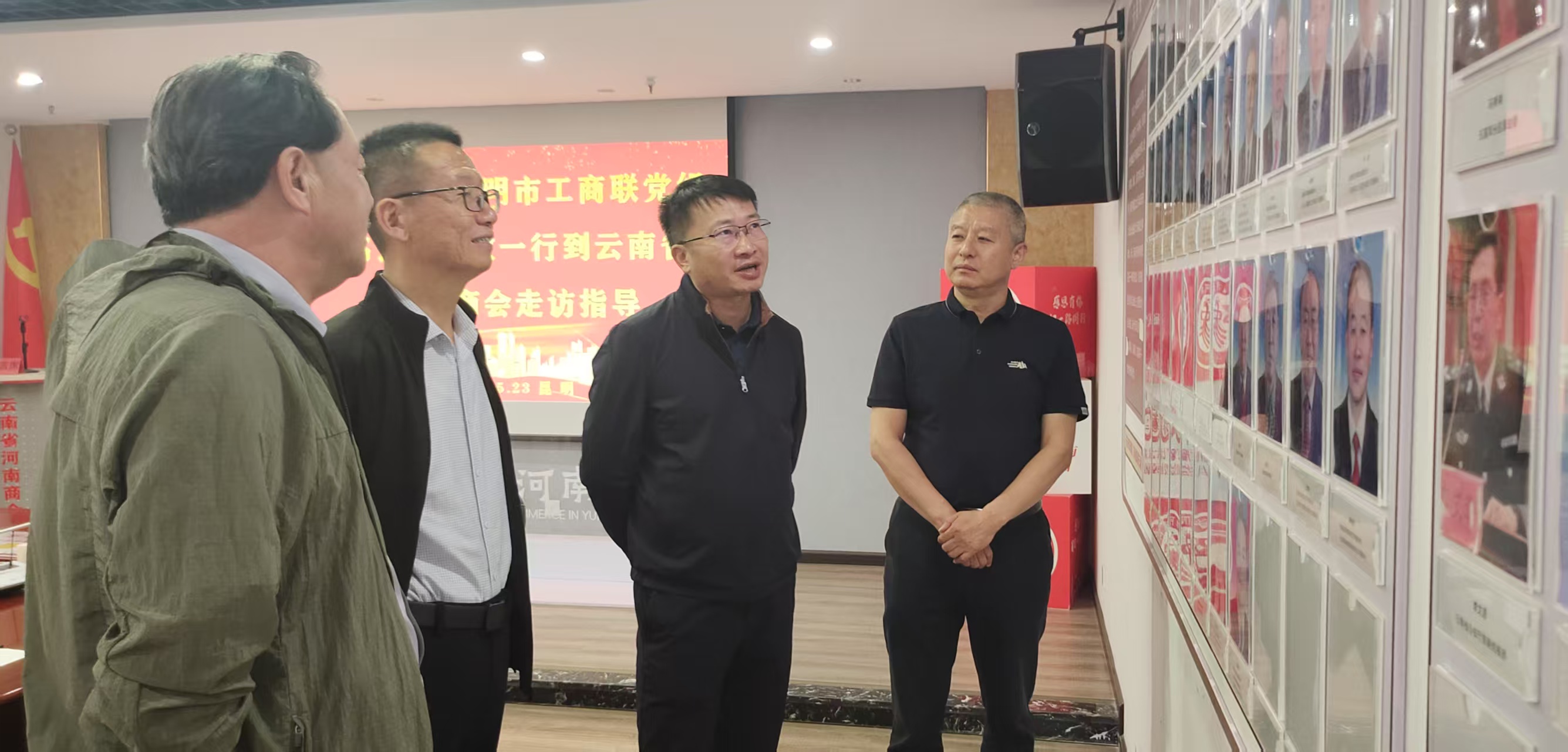 昆明市工商联党组书记王志敏一行参观了商会简介、荣誉展示、发展历程、领导班子和党建等情况,与参会会长进行了座谈交流。