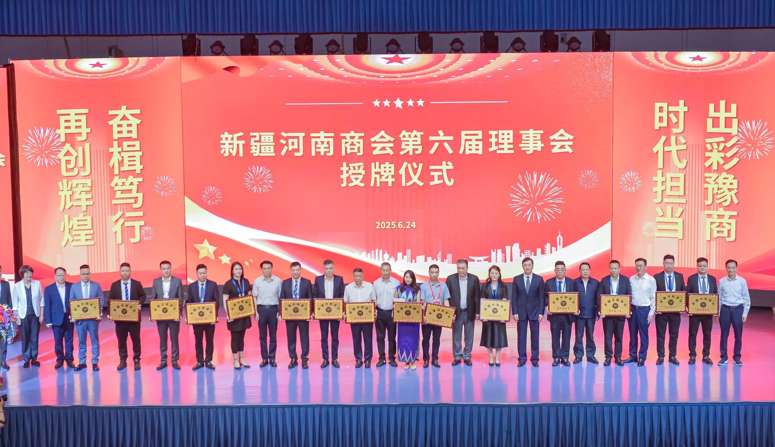 会上,河南、新疆等两地有关领导为新疆河南商会第六届理事会成员进行了授牌。
