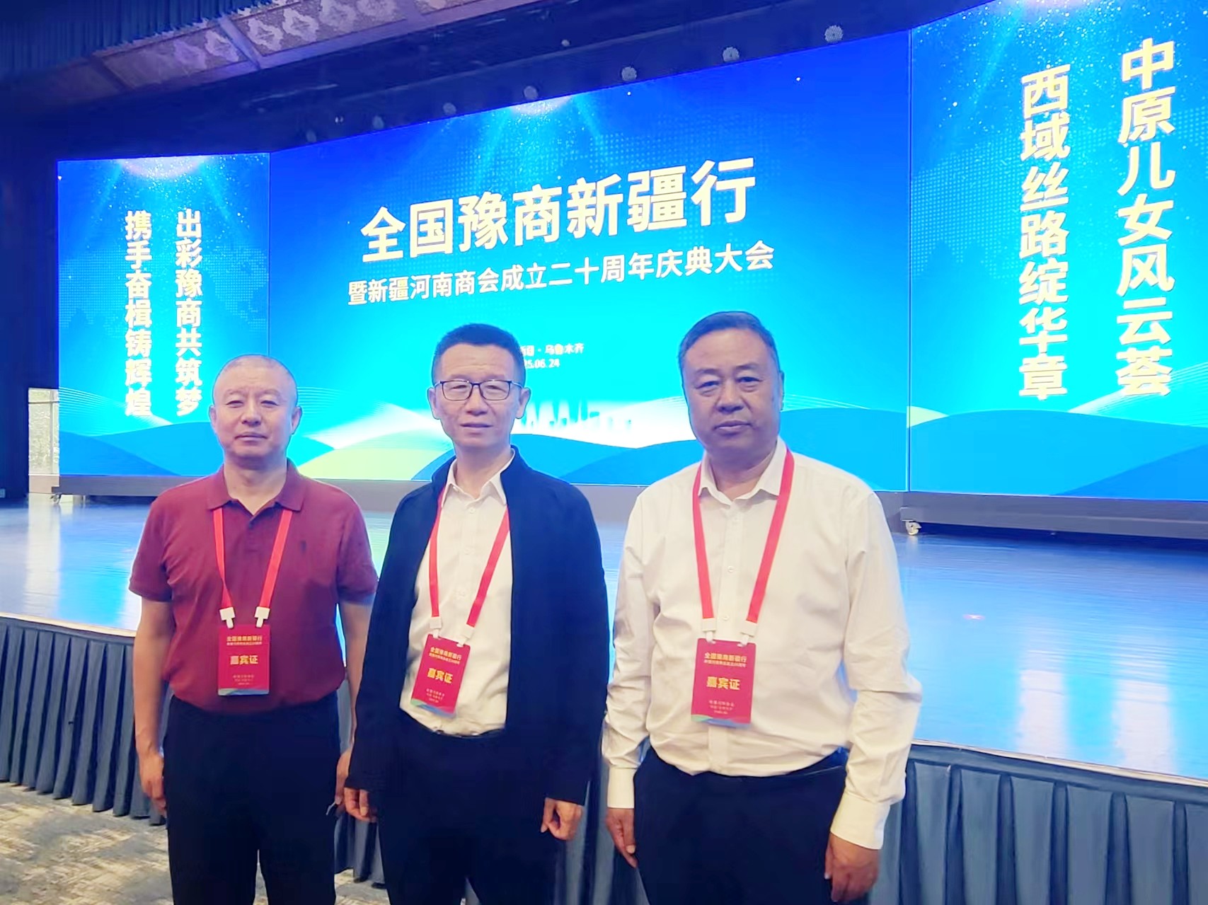 2025年6月24日,全国豫商新疆行暨新疆河南商会成立20周年庆典活动在乌鲁木齐举行。来自全国各地的近500名河南籍企业代表齐聚一堂,与新疆当地政府企业开展交流对接,寻找合作机遇共谋发展。云南省河南商会会长付保庆、执行会长兼秘书长梁国平、执行会长吴勤山、副秘书长兼办公室主任张凤森参加了活动。
