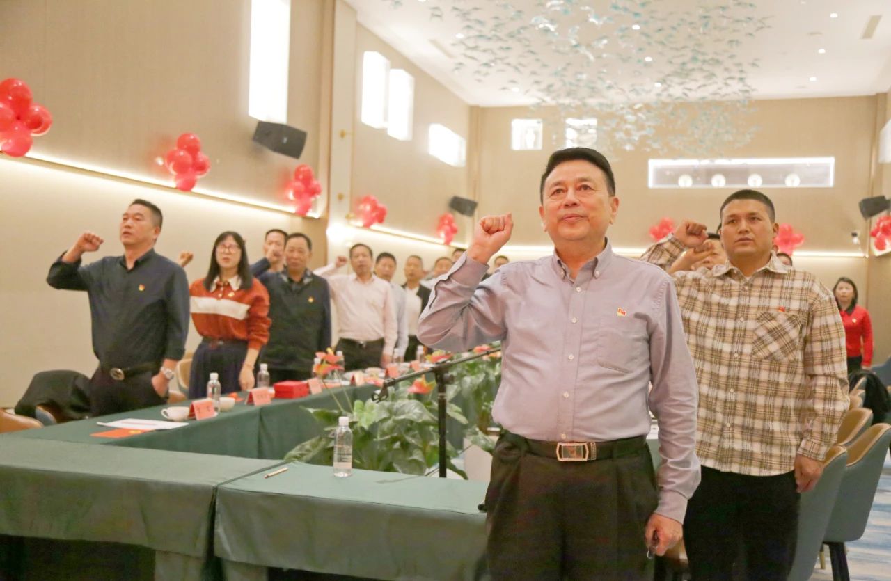 活动在庄严的国歌声中开幕,商会党支部书记、执行会长邓同华带领大家重温入党誓词。铿锵誓言,唤醒入党初心,永葆党员本色。