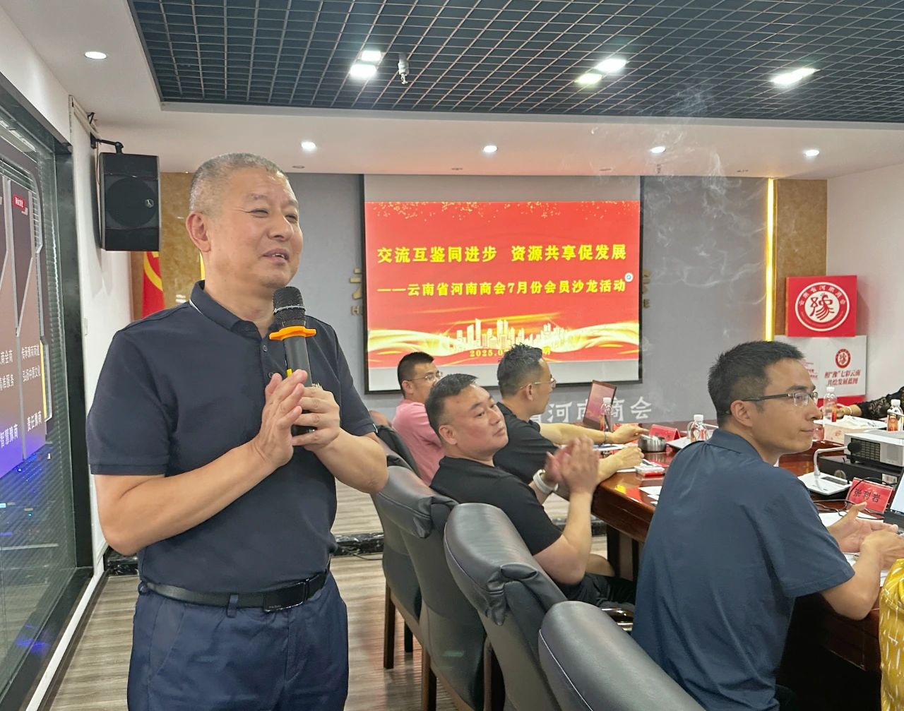 2025年7月11日下午,云南省河南商会成功举行了会员沙龙活动。商会执行会长兼秘书长梁国平,轮值会长、执行会长张斌,执行会长吴勤山、原瑞清,常务副会长梁庆聚、朱素明,副会长赵桂兰、张萍、张素芳、张利岩、甄彦彬、杜鹏飞、陈杰、曹新阳,轮值会长、副会长卢奕君,双汇云贵大区主管刘卫朋及商会理事会员近40人参加了活动。商会执行会长兼秘书长梁国平主持了活动。